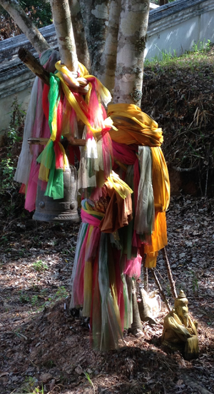 The first stop was the pagoda, one hundred and ninety steps up and down. I couldn’t quite figure out why it was there, except that everything is a metaphor. Trees wrapped in coloured cloth, auspicious meanings I understand only because I’m expected to understand (to be continued)