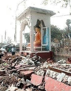 lower photo: a Buddha Rupa unharmed in the Nepal earthquake