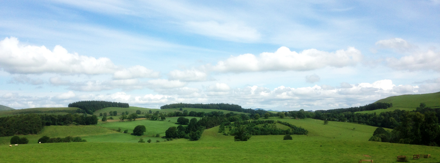 lowlands 1POSTCARD 136, Peebles, Scotland: We don’t usually wake up to the sound of birdsong at dawn, it’s too early – 4.30 am here in the room with curtains closed to keep out light that glimmers all through the night. Summer in the north means it’s nearly always day. Difficult to sleep, getting out of bed is not easy but I have to be up and ready to leave because this is the end of the retreat and the start of the long journey home.