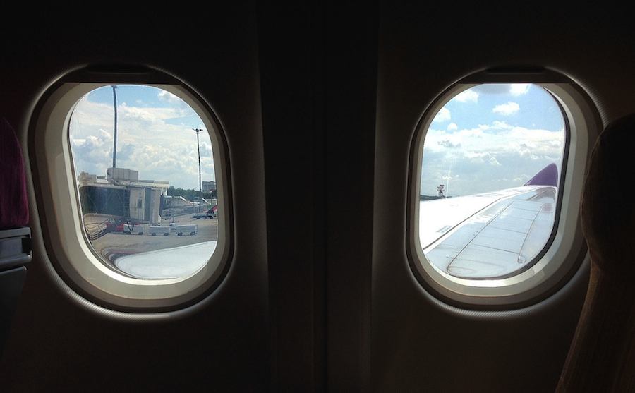 Just then, the phone rings… reflex movement to reach for it, but it’s too far and the security officer shakes her head… let it go through. Phone ringing happily as it rumbles on its rollers into the machine. I pass through the X-ray, muffled ringtone continues then lovely ascending increased volume as it comes out the other side. I want to pick it up but people are waiting, a bit harrassed; there’s the putting-on-of-the-belt and shoes. Security officials seem unmoved by the tremendous ascending 4D heavenly ringtone, probably happens all the time… eventually I get the phone. Hello?’ It’s M, my Thai niece: Where are you now Toong Ting? I tell her we are boarding the plane in a minute and will be in Chiang Mai in about one hour. Silence for a moment, then she says: I make choc-o-late-cake. Clearly punctuated percussive articulation, she speaks English as a second language. I tell her, oh nice! and try to explain how the phone got X-rayed as she was calling me, but she can’t find anything to say to that… attempting to find a link with something else it could be related to, mind travels away with this information. No time to discuss, we have to go now, bye. Speedwalking through to the Departure gate and they’re boarding just as we get there; processed, find seats, strapped in and ready for take-off… engines roar, climbing again up into higher altitudes.