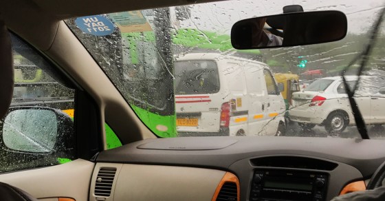 POSTCARD#271: Delhi: It’s a warm rain to me, of course, coming from the far northern part of the world. Here in Delhi (28.6139° N, 77.2090° E), it’s not a cold rain, it’s cool – a huge respite from the fierce dry summer that’s been hammering down on us. Almost volcanic, self-combusting temperature these last few months. Now it’s like a champagne party for the team that won the race and everyone joins in. Disregarding danger, street kids up to their knees in deep puddles, completely wet, clothing stuck to their skinny bodies, and dashing around in traffic. One of them jumps daringly close to my window as we drive through at speed and send up a shower of shlooshing and splooshing, laughter in the great waves splashing over their heads.