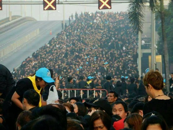 • Hi Sunny, the ceremony is taking place simultaneously at special sites all over the country and in Thai embassies all over the world. It means hundreds of thousands… more than that, I can’t picture a million people in one place just standing there, not overwhelmed but quietly in what we call their ‘grief’. The word I hear all the time here is ‘memory’ – holding the memory in mind. About the Times article, I didn’t intend it to be seen a topic of discussion. So maybe that can be forgotten, and it’s good to have you over here and thanks for the word ‘wellbeing’.
