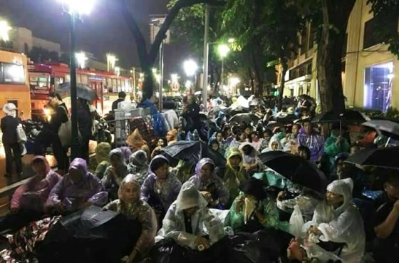 The night before, sleeping in the rain.
