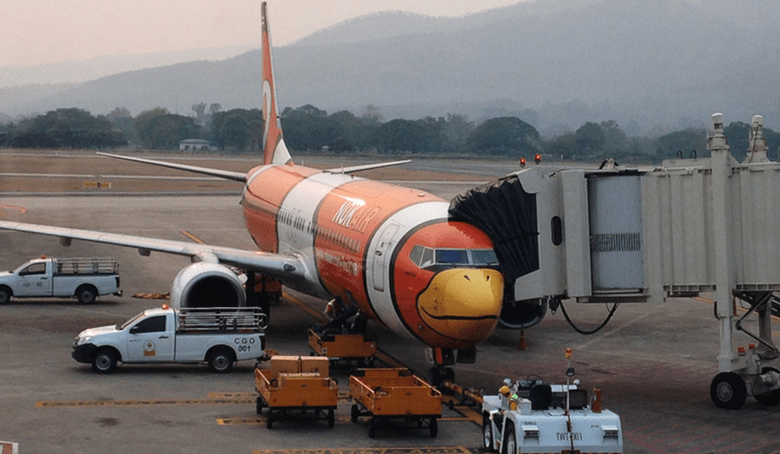 Chiang Mai: Arrived in the early evening and out through the exit tunnel into the airport corridors. Turn the first corner and we’re looking back through a large window at our plane with passenger bridge attached. M says, in her 9-year-old voice: take a photo of it… put in your blog Toong-Ting (she calls me that). There’ll be a time when M takes a direct editorial role in this blog… so I take the photo and here it is now. A passenger aircraft that has a painted face, while a large reptilian mouth is sucking out the contents of the plane.