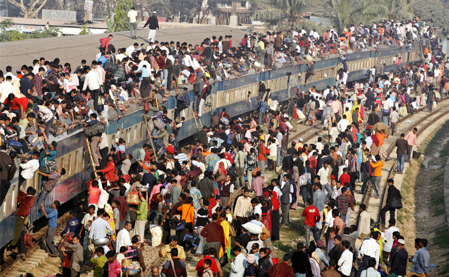 I’m thinking of what it must be like to be one of these individuals with a place on the roof of the train, doing this trip annually; quite used to the sheer vastness of it all. Perhaps taking some comfort from the fact that there could be hundreds of human beings there at that very moment – also aware that the totality of this annual migration in Bangladesh is in the millions, certainly. Holding on to each other up there on the roof on the rough and bumpy ride. A journey maybe a day and part of a night, for some of them, and jumping off the train in groups, then probably another long journey to get home.